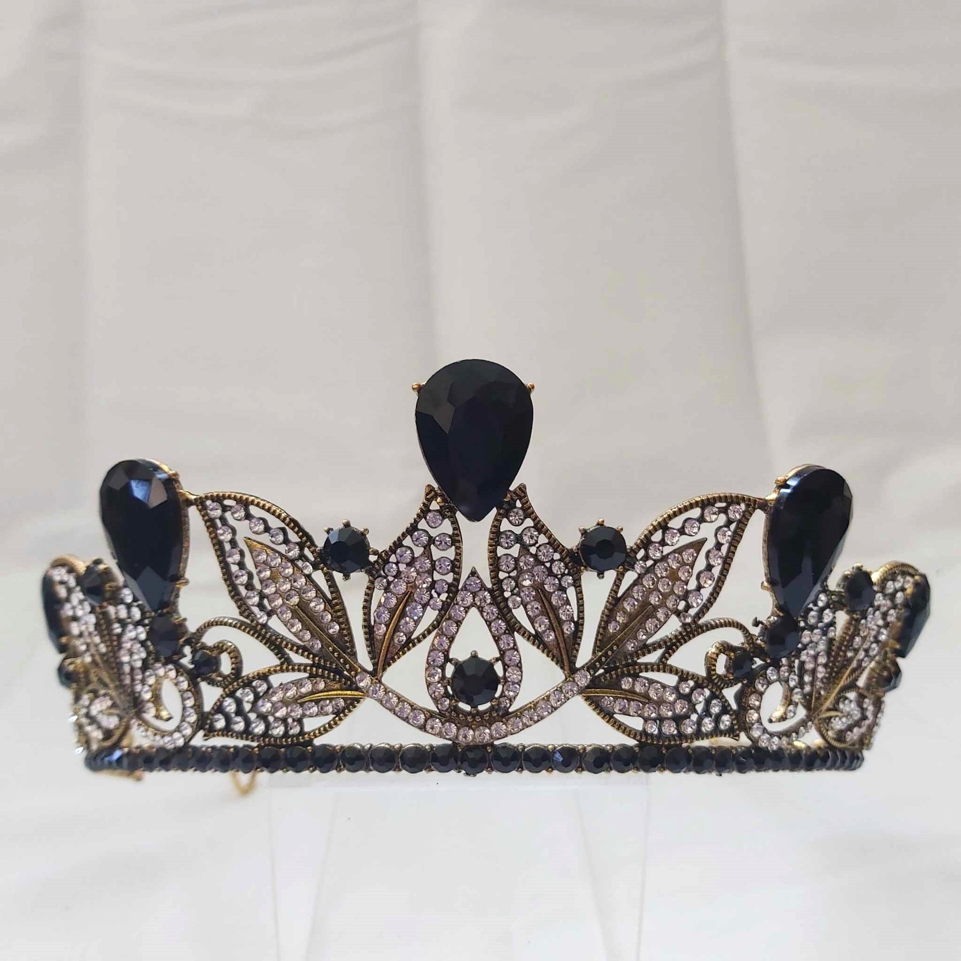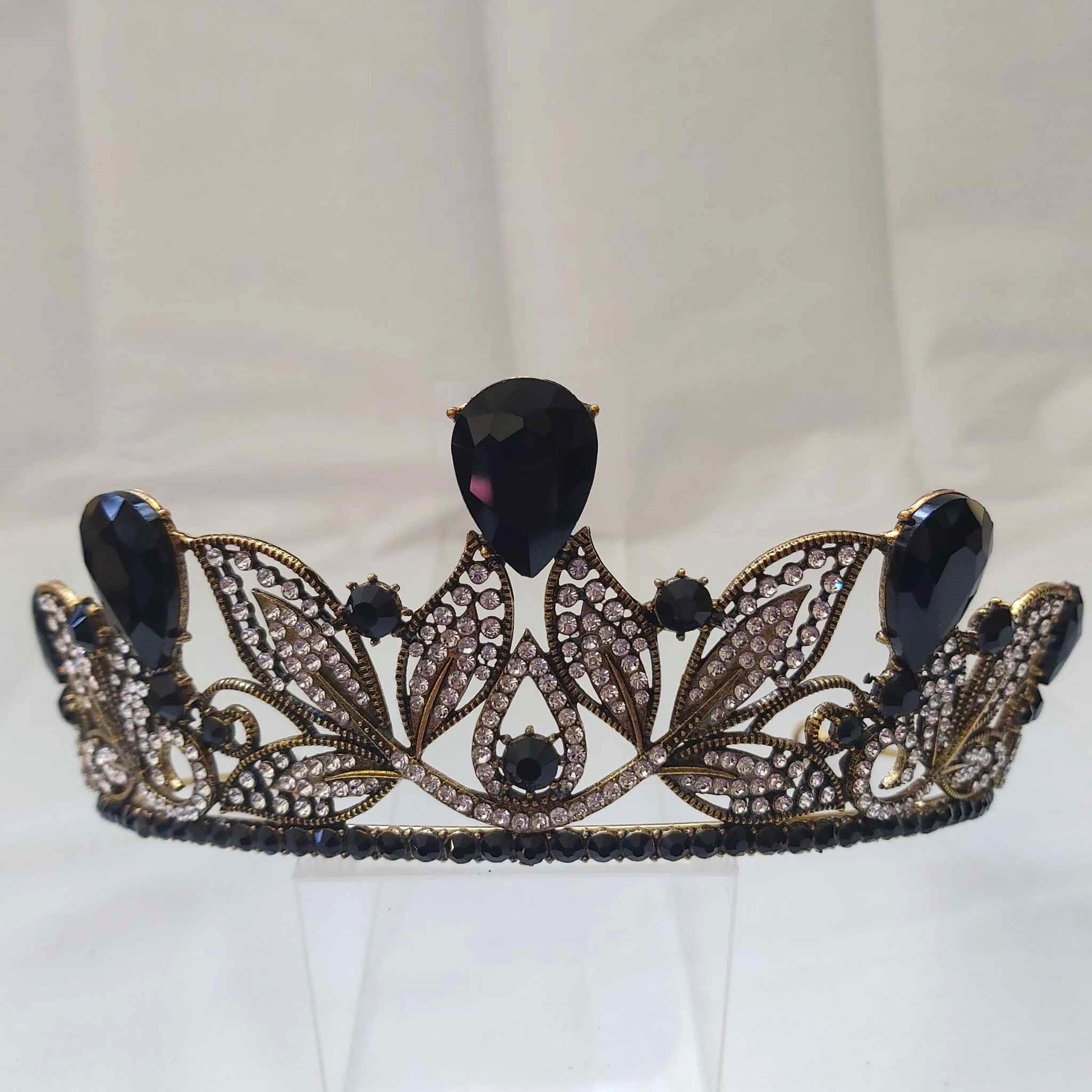 Black Rhinestones Crown Tiara Baroque (CR45)