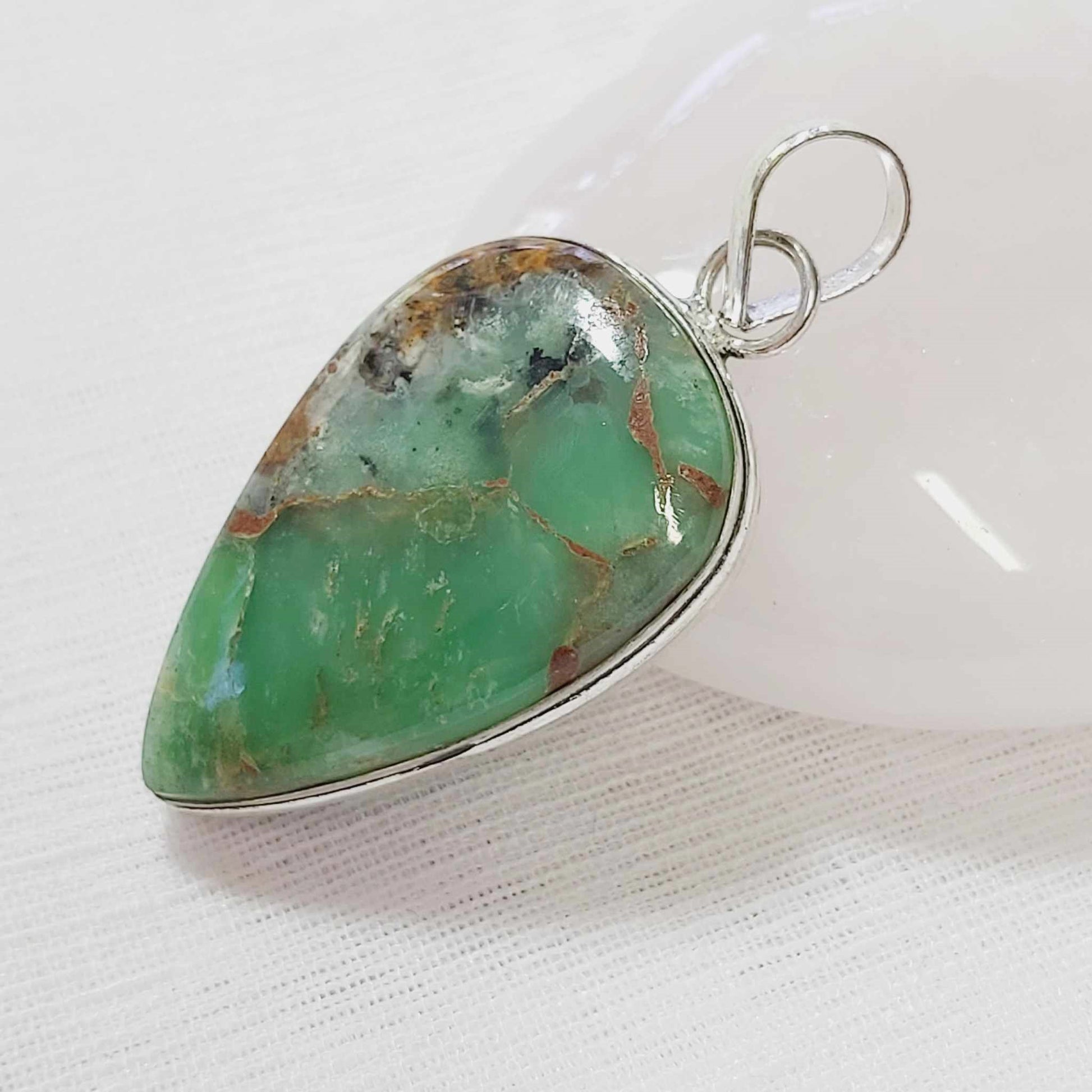 Welcome style and spirituality with this lovely, pretty, and unique Chrysoprase gemstone pendant making the perfect jewellery addition to your outfit for all occasions.