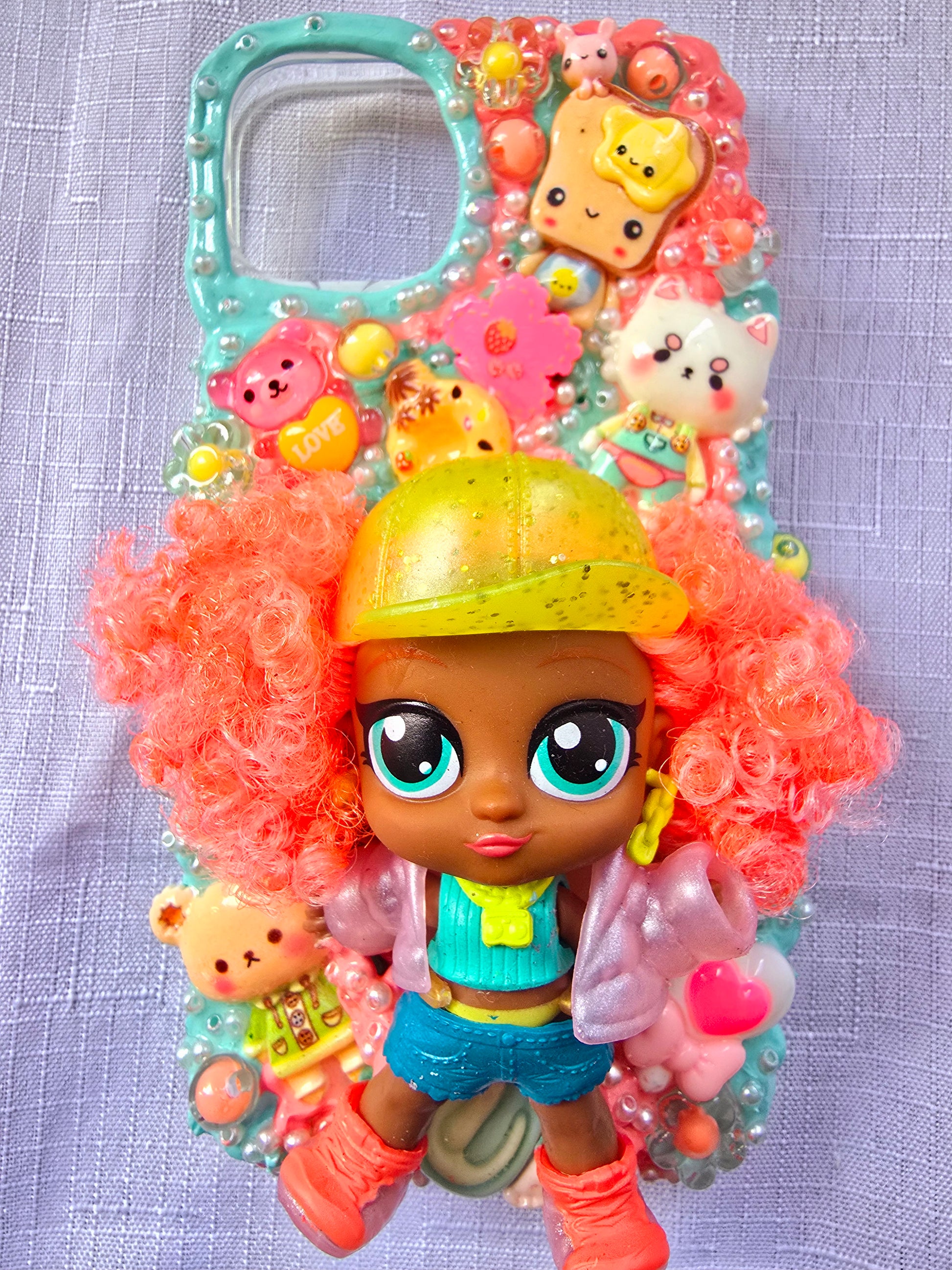 Measurements of Main Girl Character on Phone Case (approximate): 8.5 cm by 8cm at its longest point