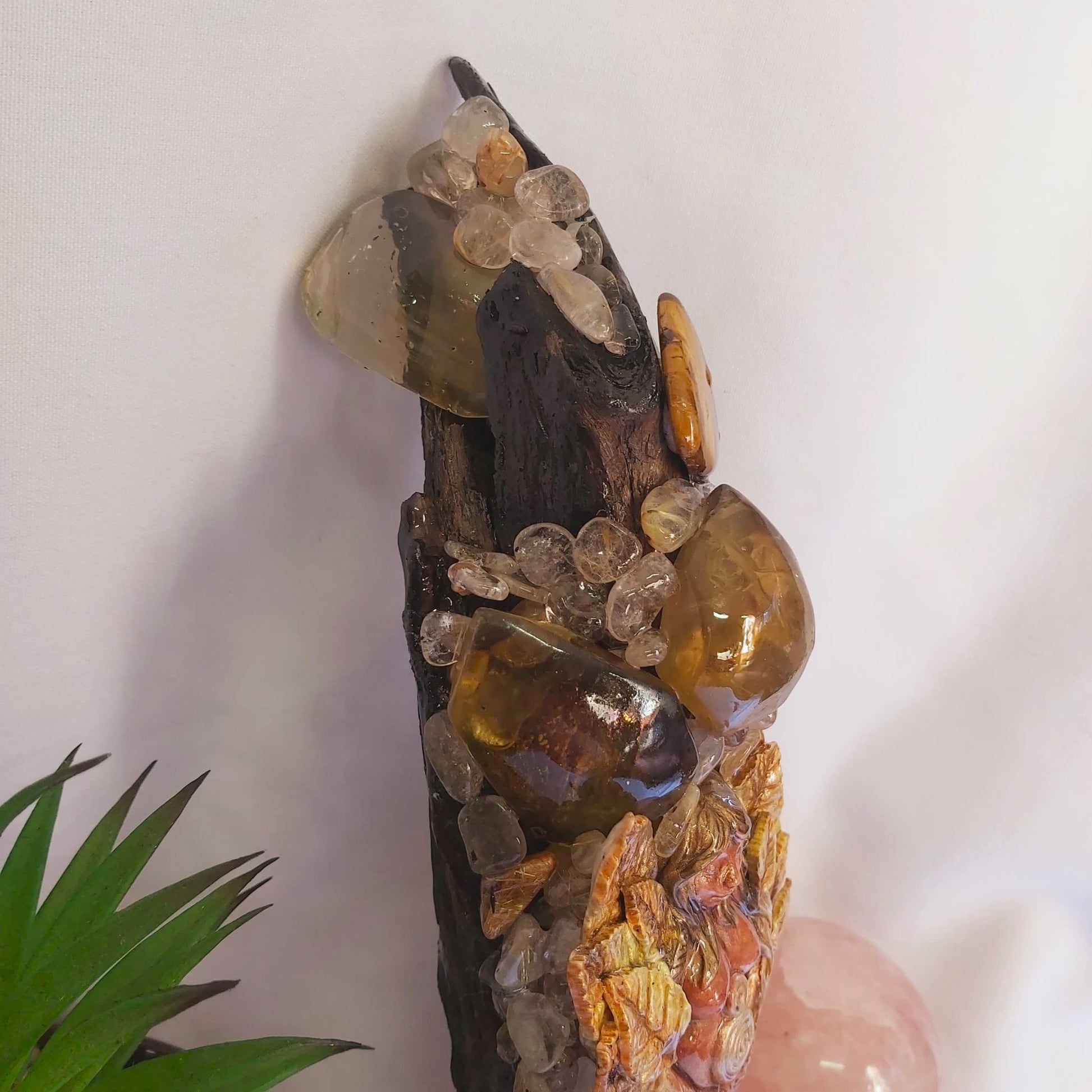 Say hello to Lemoka, a one-of-a-kind handmade wand and décor sculpture from our Spiritual Wand Collection. Crafted with love and intention, Lemoka features Citrine, Tiger Eye, Agate, and Golden Healer Quartz. It stands 28 cm tall, weighs 590 g, and is a handheld piece (doesn’t stand on its own).