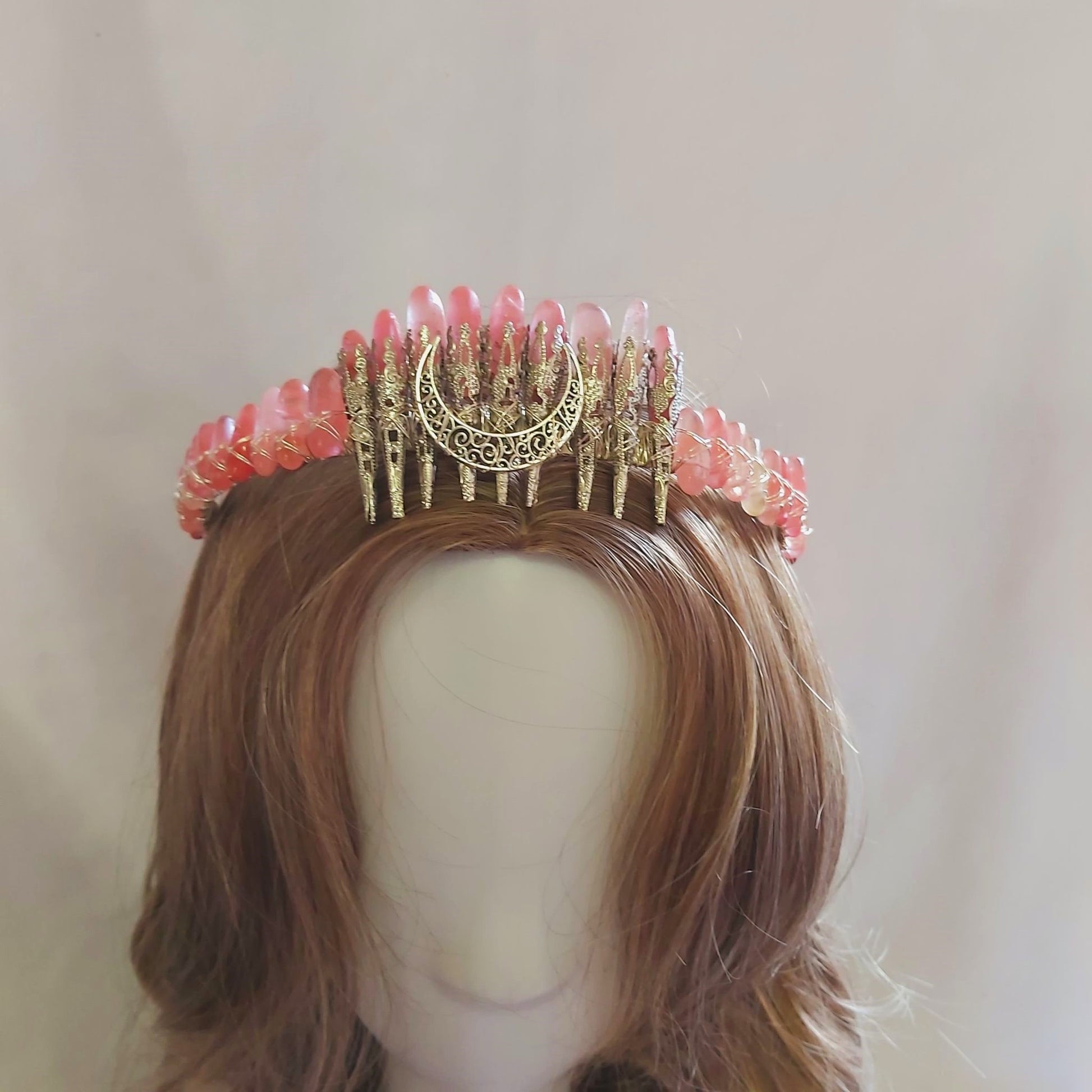 Watermelon Quartz Crystal Gemstone Crown Tiara Handmade (CR40)