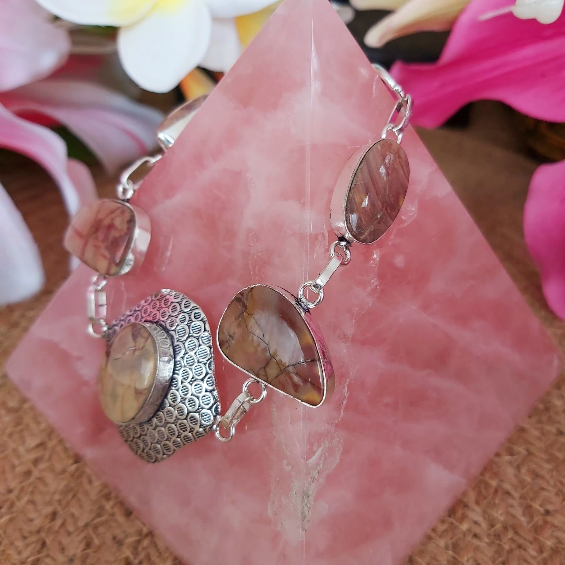 Welcome style and spirituality with this lovely, charming, and unique Picture Jasper gemstone bracelet making the perfect jewellery addition to your outfit for all occasions.