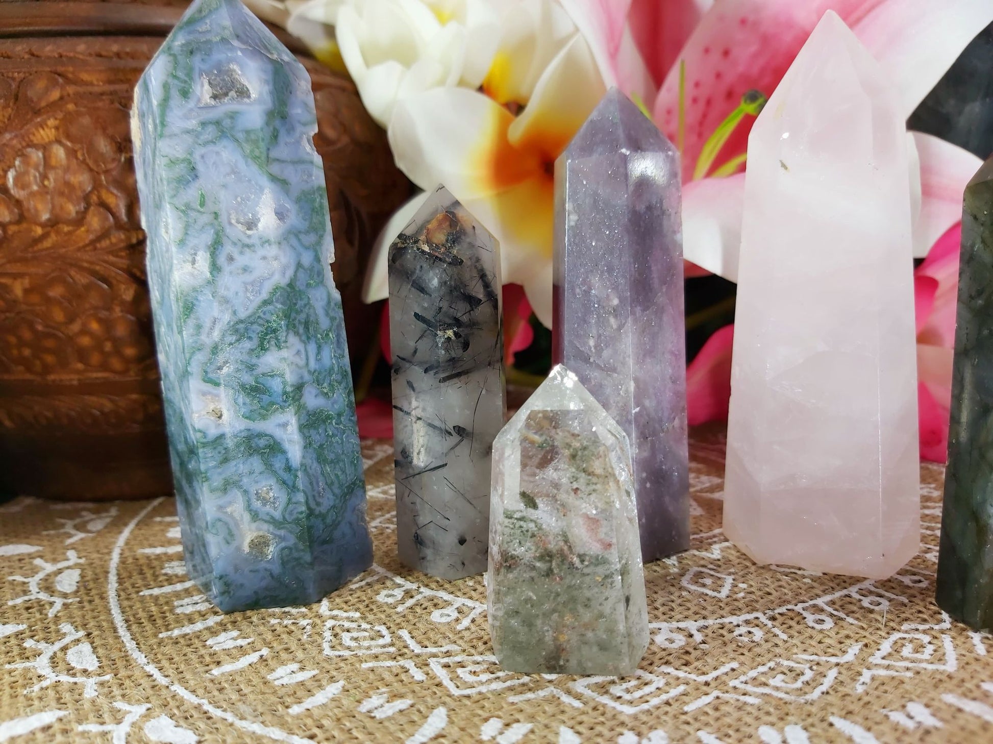 6 Crystals Included: Moss Agate, Rose Quartz, Pink Tourmaline, Labradorite, Black Tourmaline, and Garden Quartz