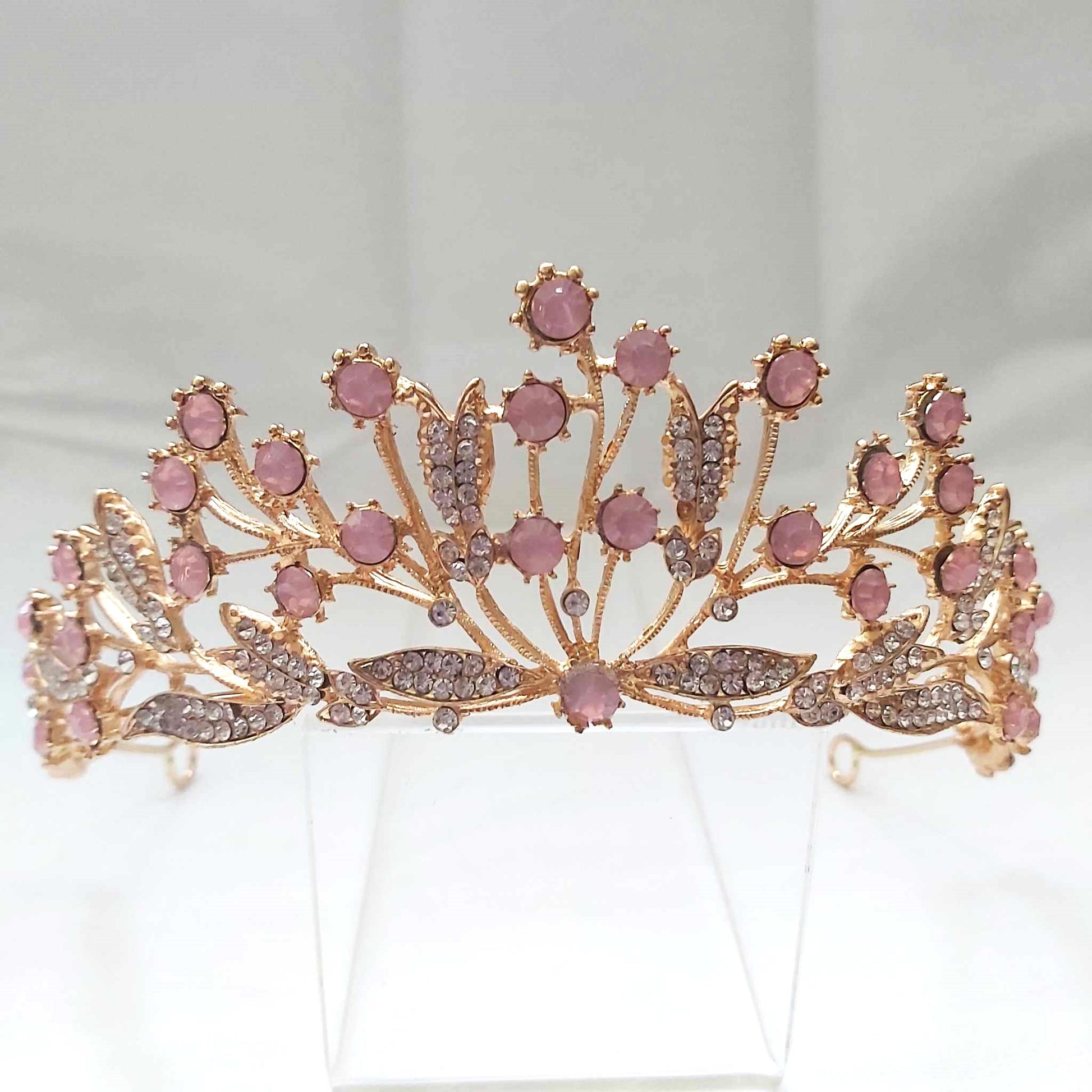 Pink Rhinestones Crown Tiara Baroque (CR28)