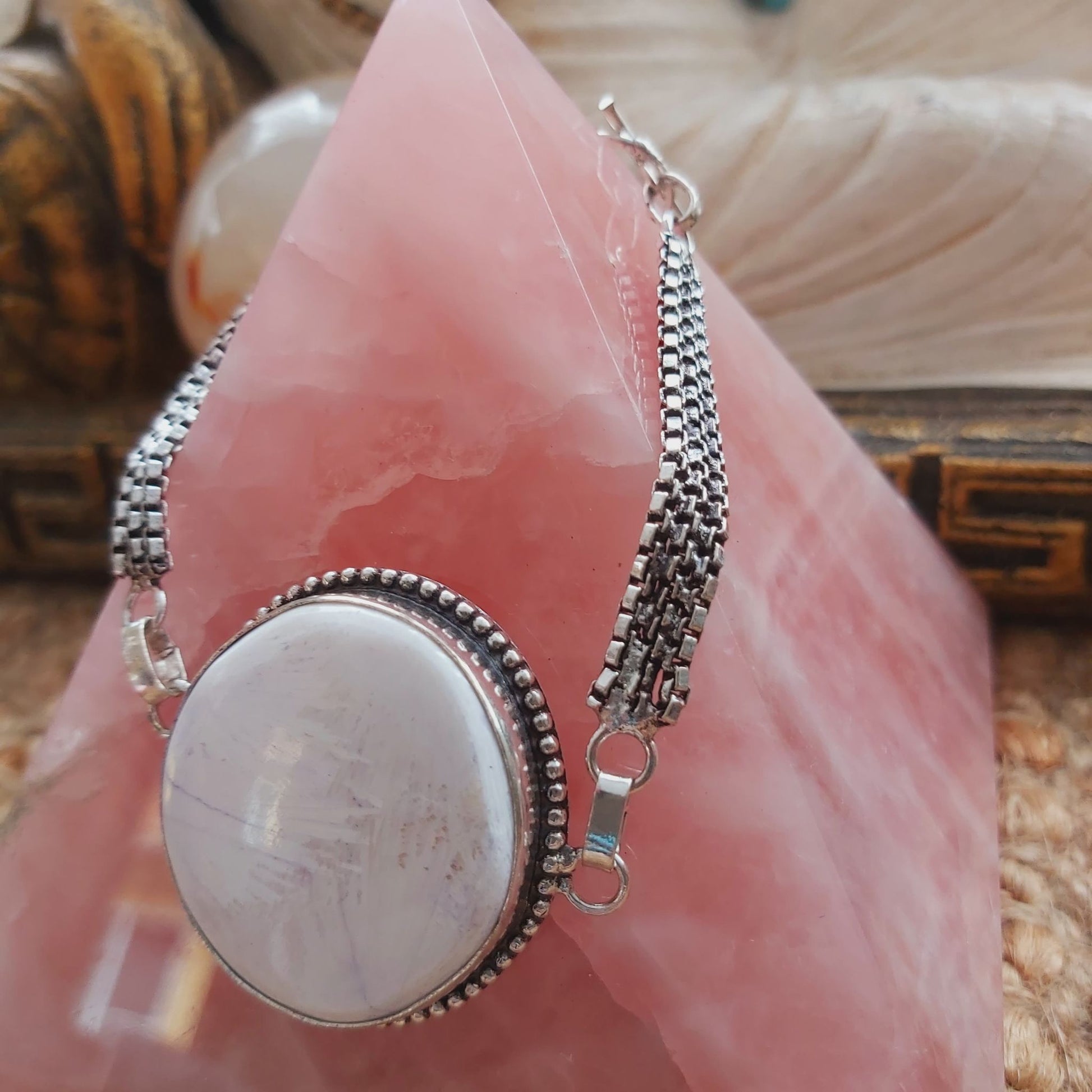Welcome style and spirituality with this lovely, pretty, and unique Scolecite gemstone bangle making the perfect jewellery addition to your outfit for all occasions.