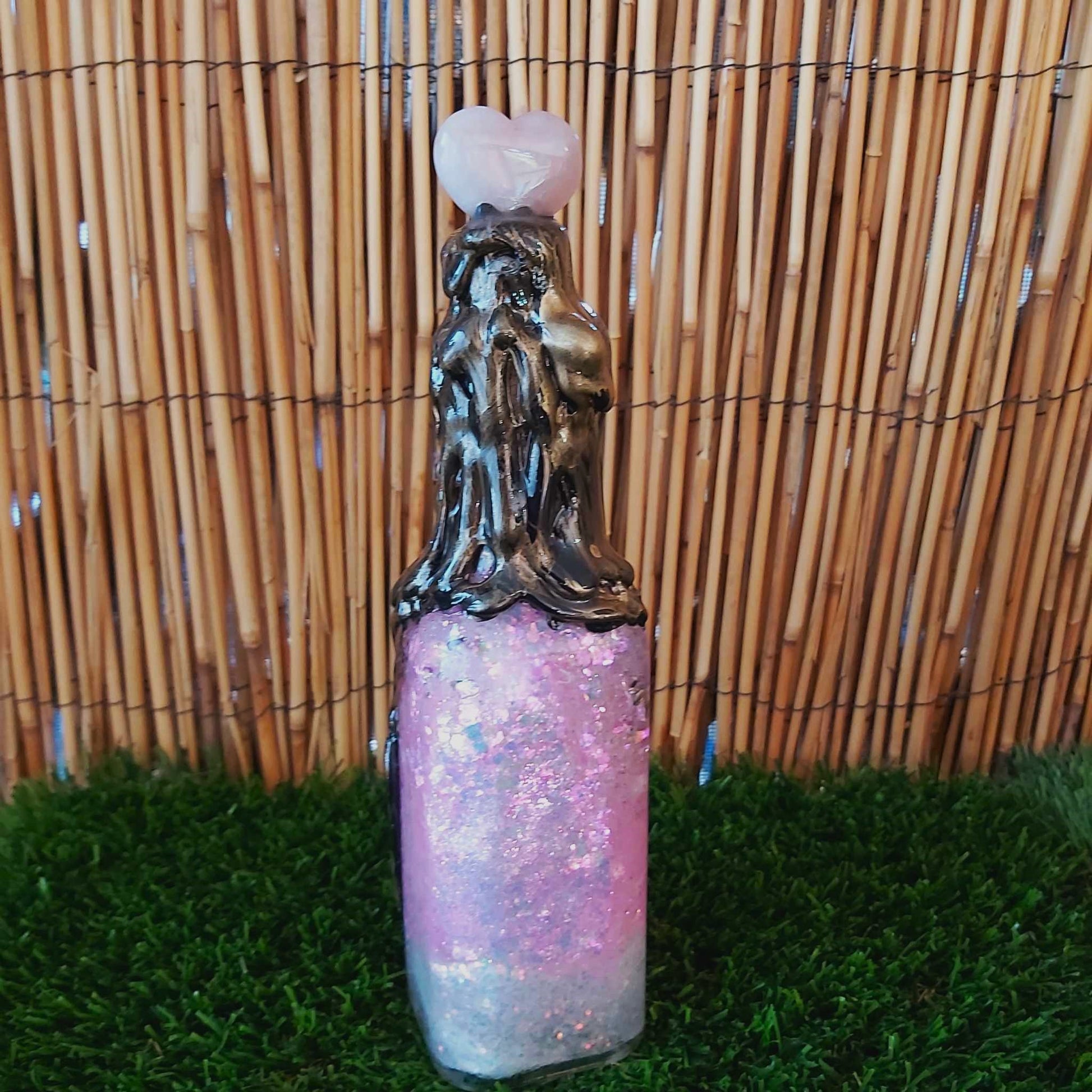 ✨ Our Spiritual & Divination Spell Potion Altar Bottles are handmade by Kaftan 9, inspired by visions from my dreams. Each is crafted from handpicked materials and topped with a unique crystal — this one features Rose Quartz.