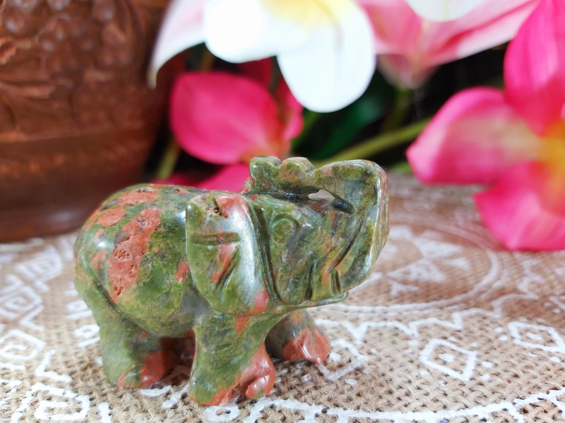 3 Elephant Shaped Crystals Included: Agate, Mahogany Obsidian, and Unakite