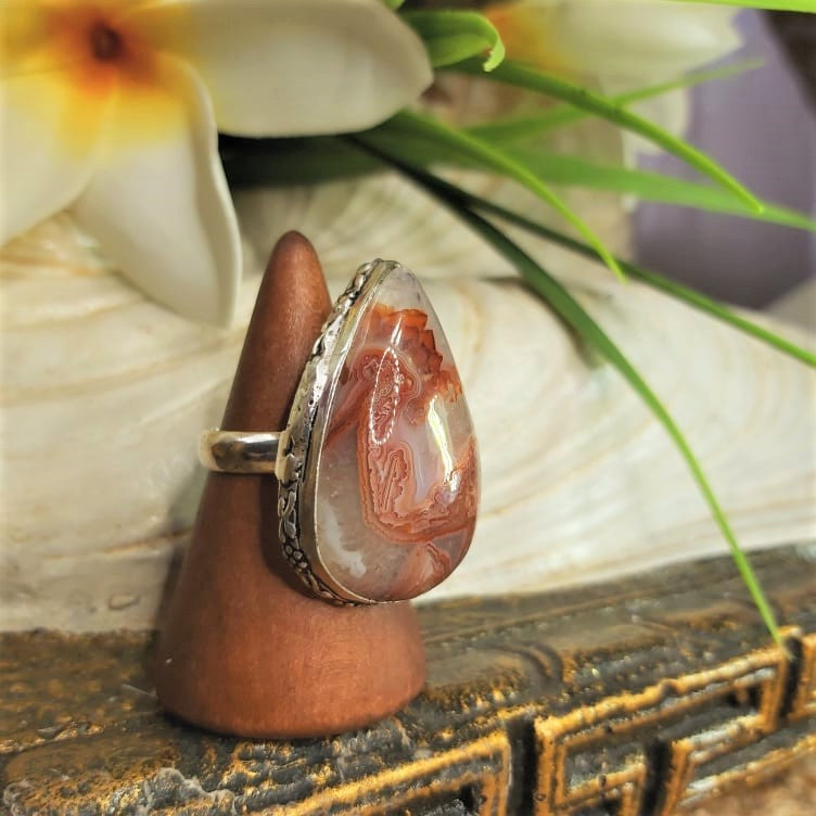 Agate Physical Wellbeing Gemstone Ring US 7.5 (E1697)