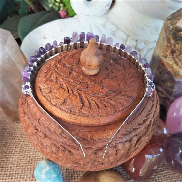 Embrace your inner goddess with this handmade crystal crown, crafted with wire and Amethyst. Perfect for festivals, cosplay, or simply owning your power at home.