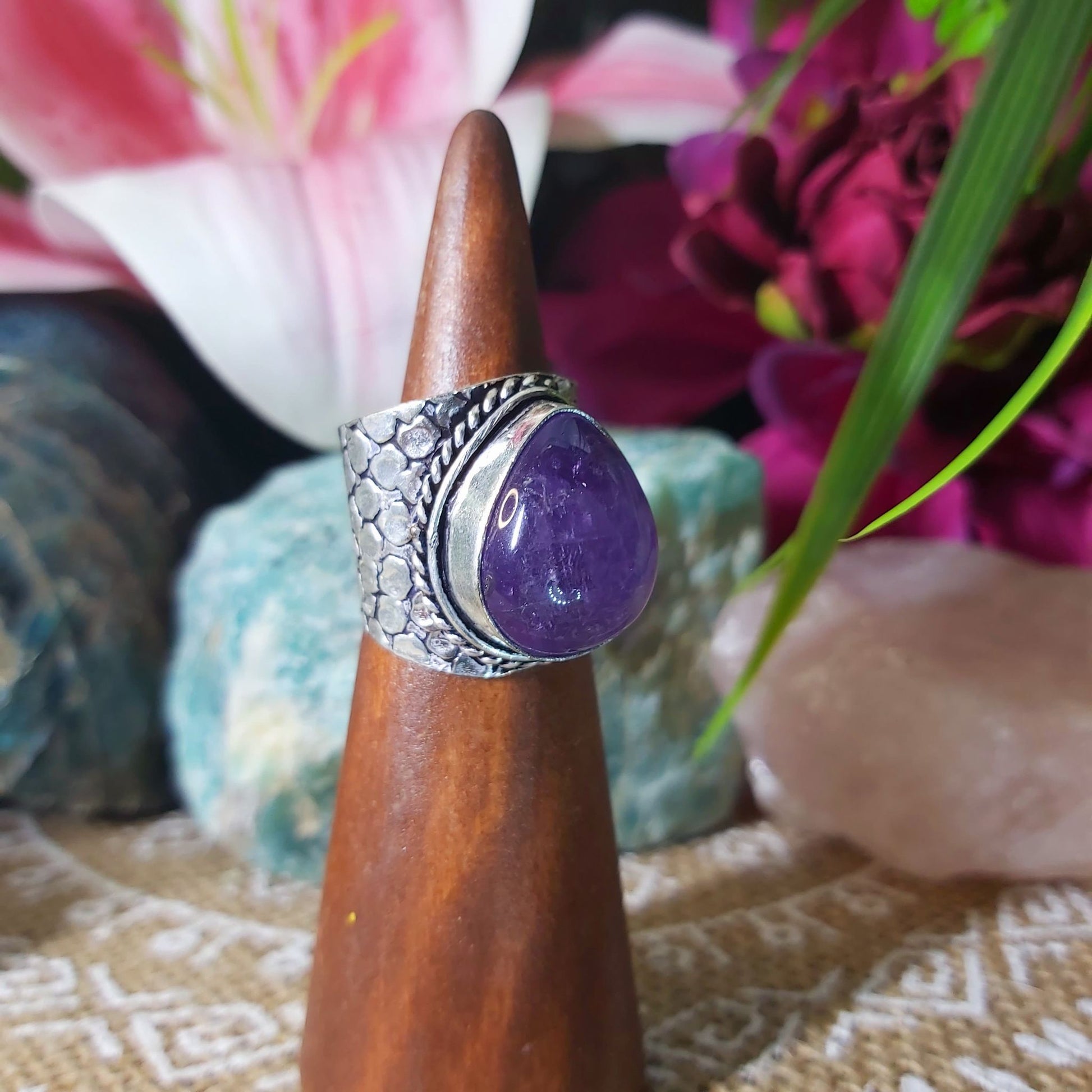 Welcome style and spirituality with this lovely, pretty, and unique Amethyst gemstone ring making the perfect jewellery addition to your outfit for all occasions.