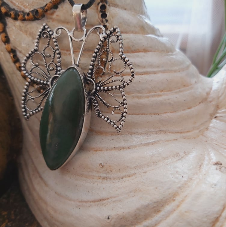 Aventurine Good Luck Gemstone Butterfly Pendant (E1508)
