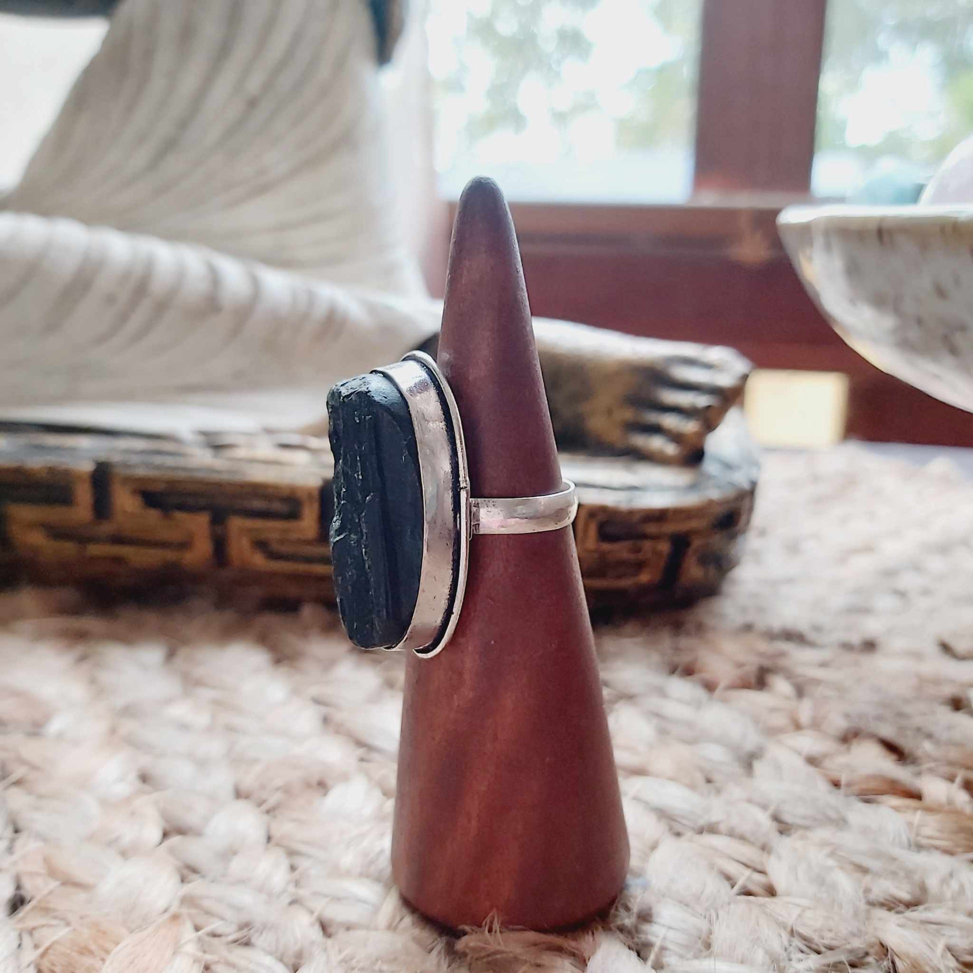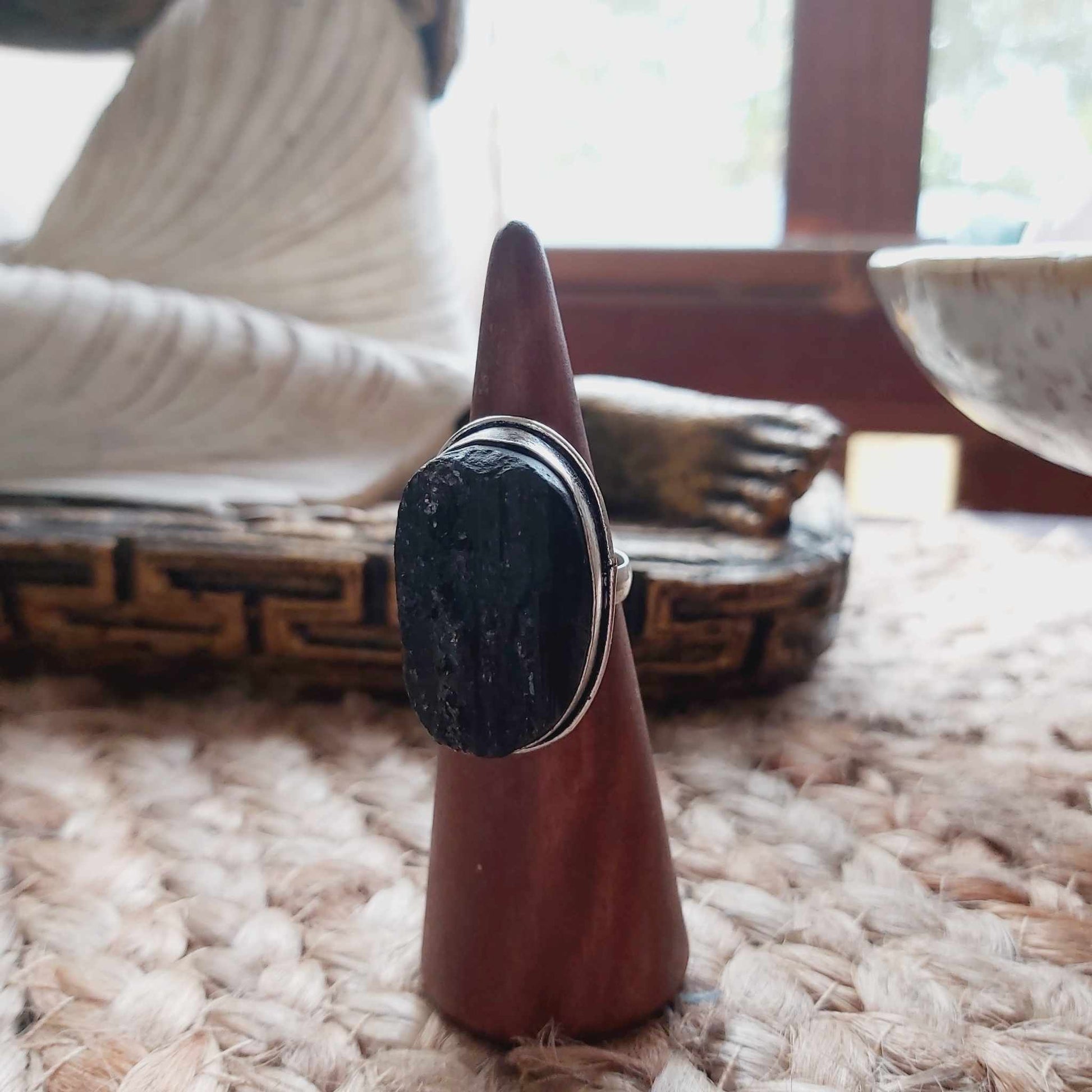 Black Tourmaline Psychic Protection Ring US 6.5 (E2473)