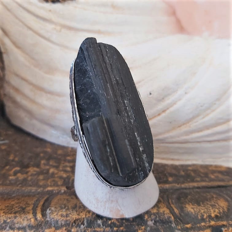 Black Tourmaline Psychic Protection Ring US 9 (E2419)