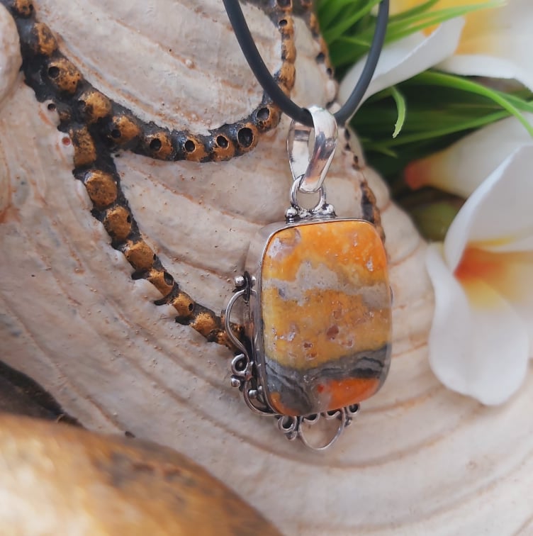 Welcome style and spirituality with this lovely, pretty, and unique Bumblebee Jasper gemstone pendant making the perfect jewellery addition to your outfit for all occasions.
