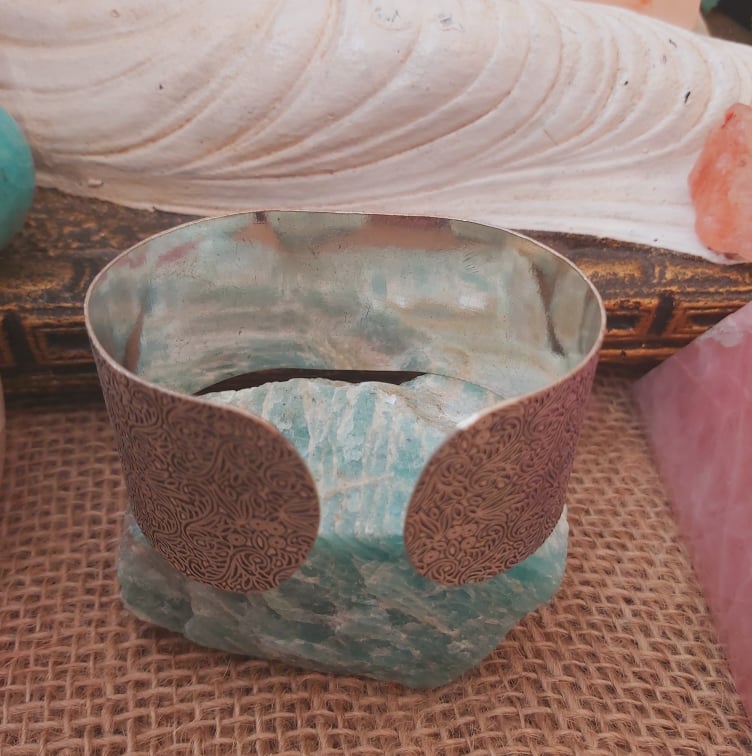 Chrysocolla connects to the heart and throat chakras. It opens and cleanses the throat chakra and, via the heart chakra, helps one to communicate and fully express one’s inner wisdom, knowledge, and truth with a heart centred awareness.