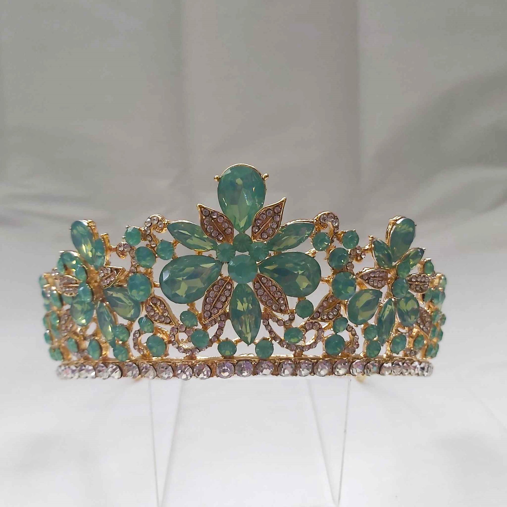 Green Rhinestones Crown Tiara Baroque (CR37)