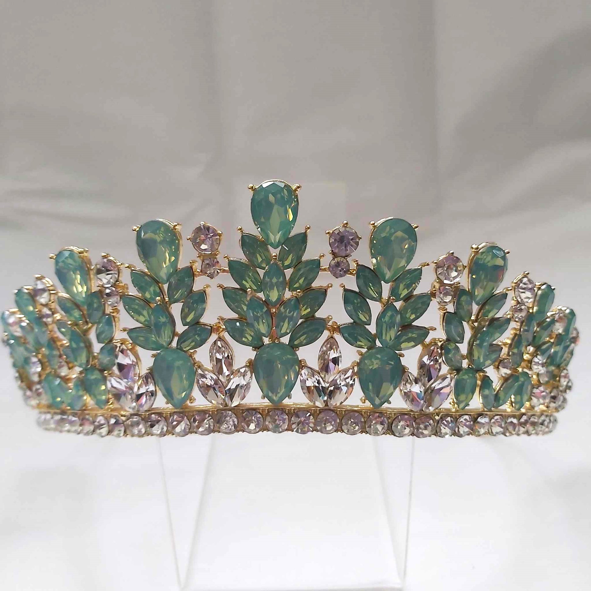 Green Rhinestones Crown Tiara Baroque (CR38)