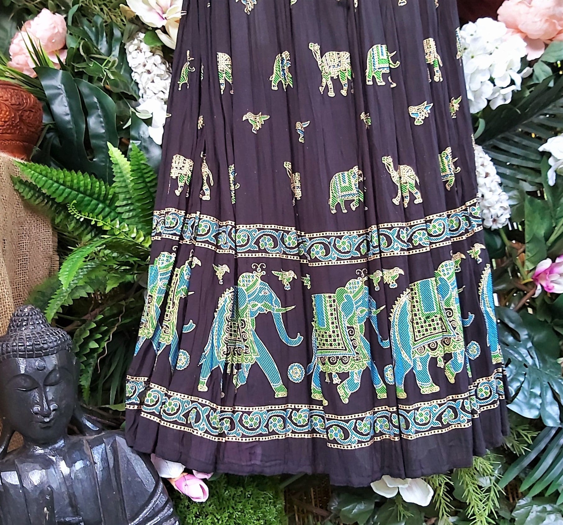 Crafted from lightweight viscose, this long maxi skirt offers a flattering, relaxed fit that’s ideal for warm weather. Designed with comfort in mind, it features a drawstring tie and elastic waistband for a custom fit. Whether you're lounging at the beach or dressing up for a casual outing, this boho chic skirt adds effortless style to any outfit.