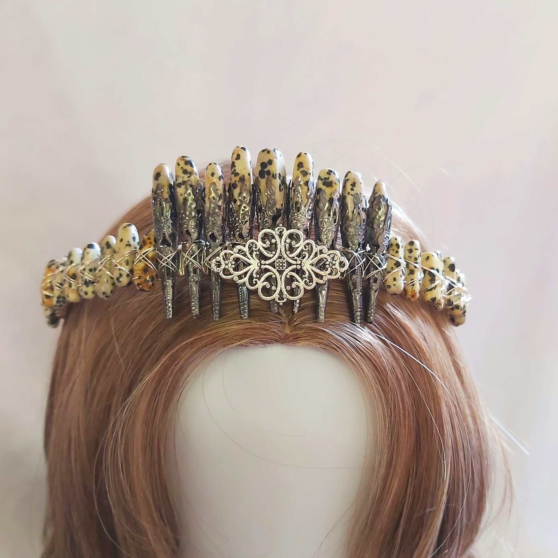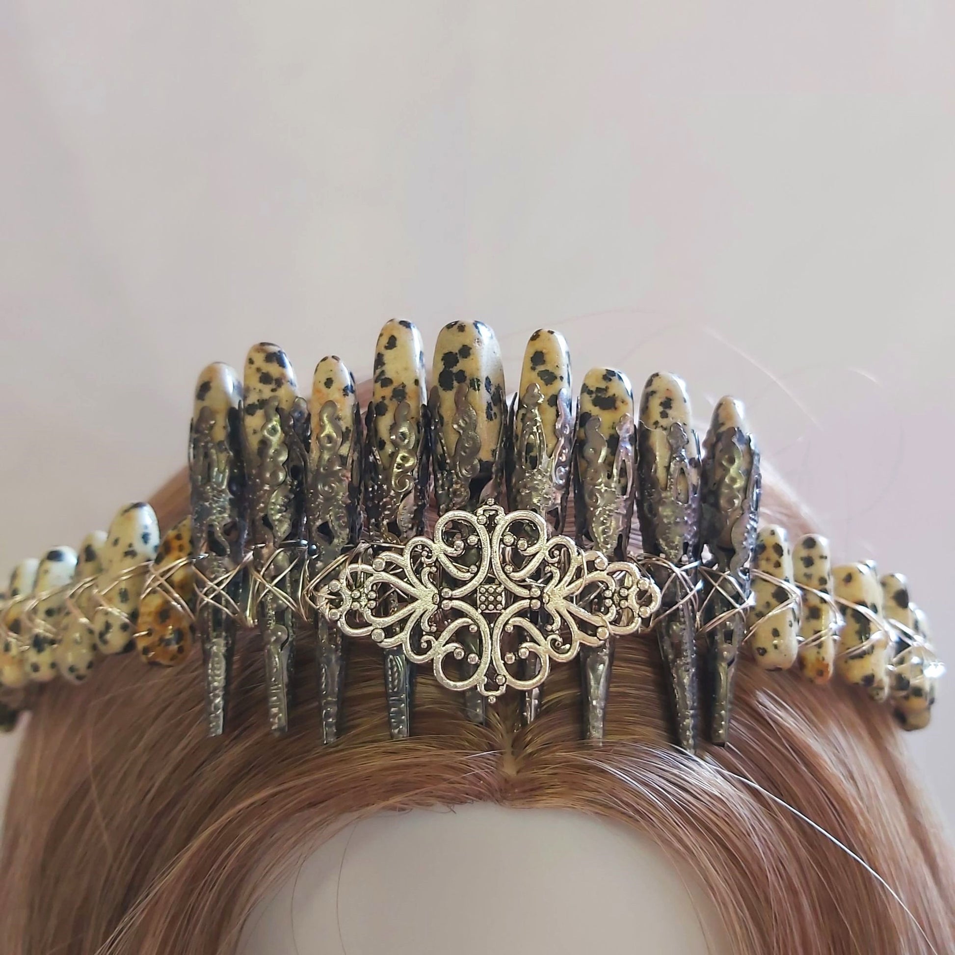 Dalmation Jasper Crystal Gemstone Crown Tiara Handmade (CR41)