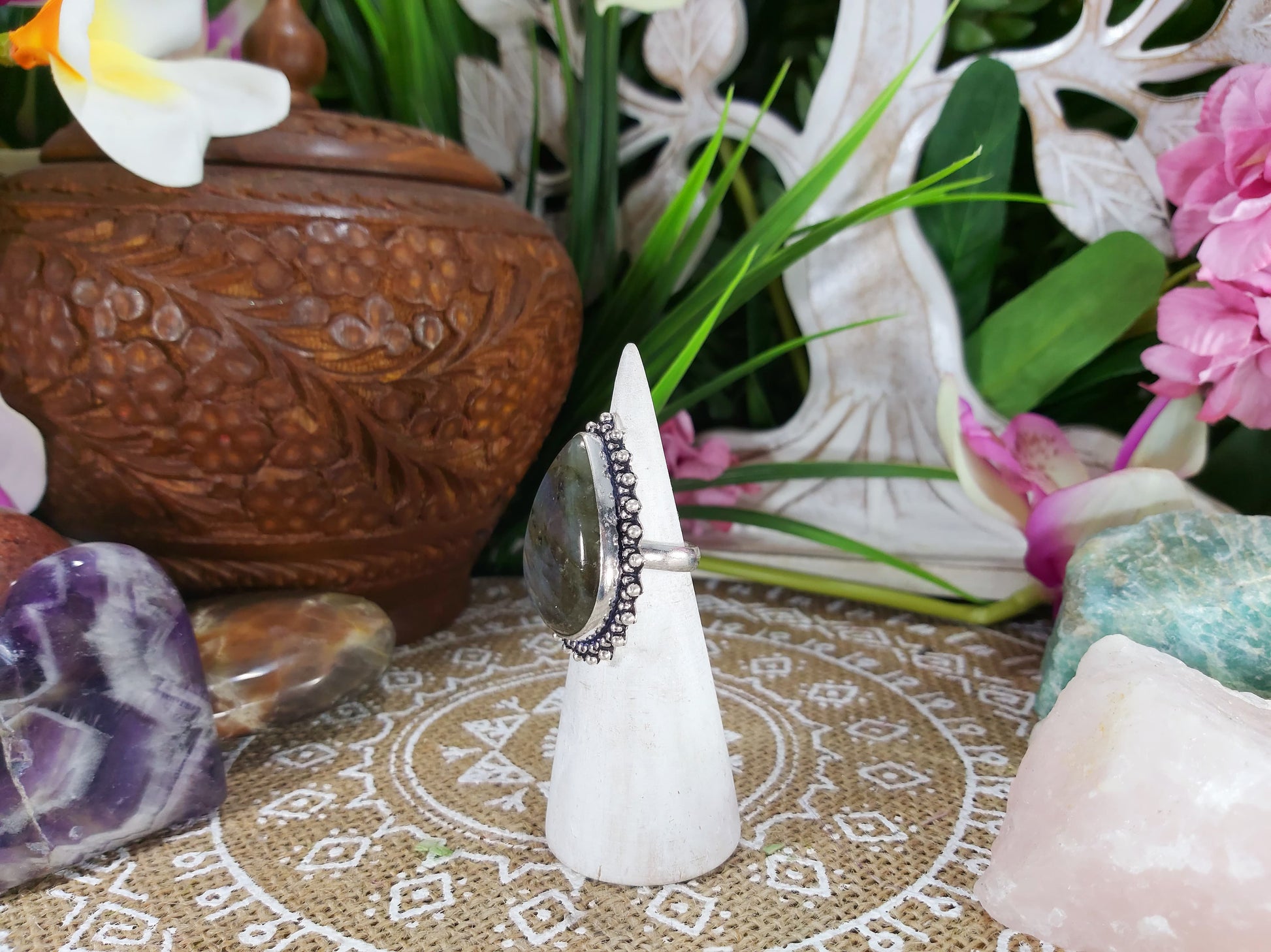 Welcome style and spirituality with this lovely, pretty, and unique Labradorite gemstone ring making the perfect jewellery addition to your outfit for all occasions.