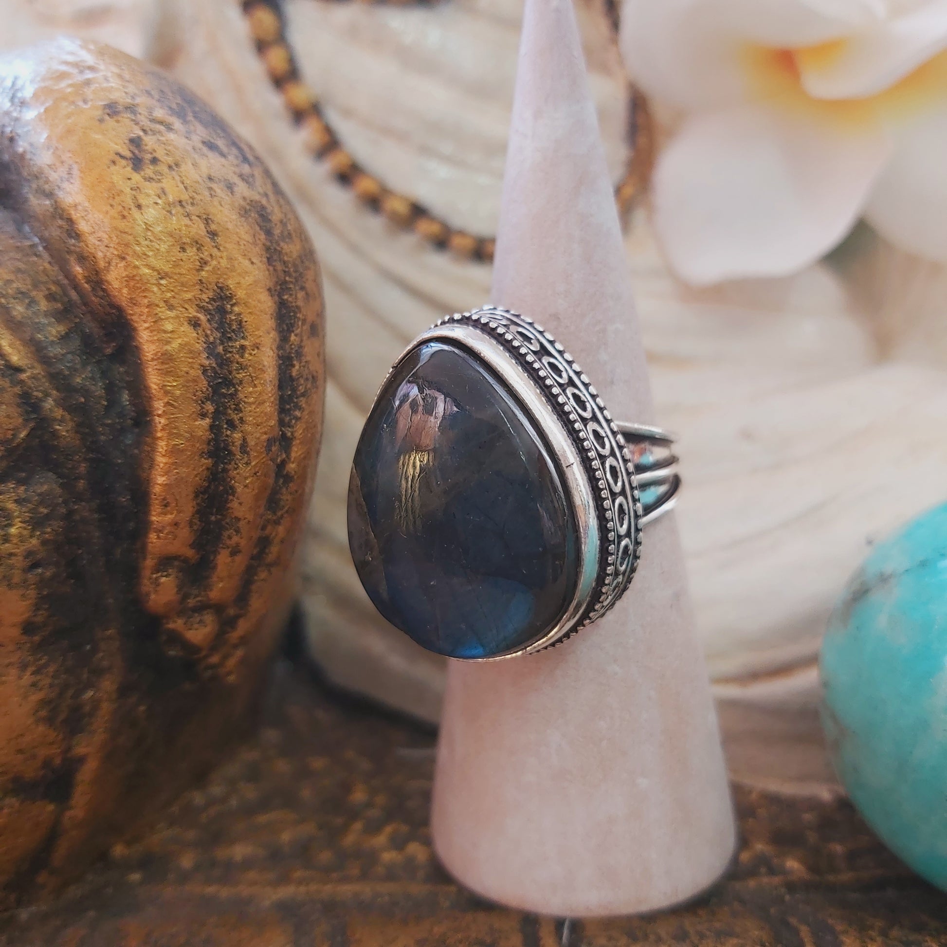 Welcome style and spirituality with this lovely, pretty, and unique Labradorite gemstone ring making the perfect jewellery addition to your outfit for all occasions.