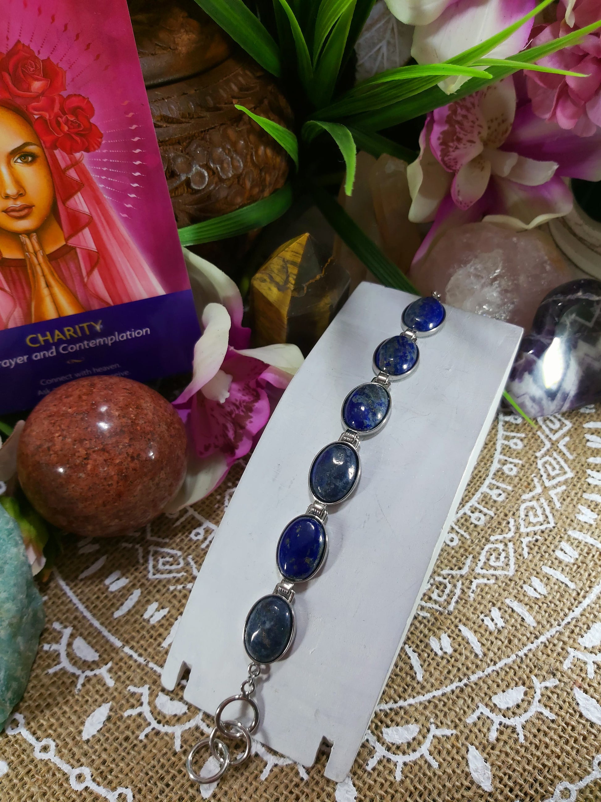 Welcome style and spirituality with this lovely, charming, and unique Lapis Lazuli gemstone bracelet making the perfect jewellery addition to your outfit for all occasions.