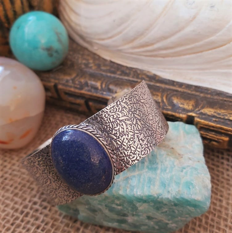 Welcome style and spirituality with this lovely, charming, and unique Lapis Lazuli gemstone bangle making the perfect jewellery addition to your outfit for all occasions.