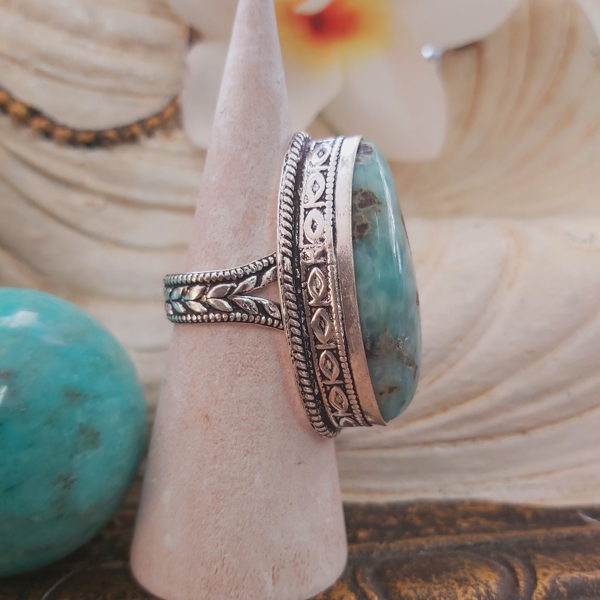 Welcome style and spirituality with this lovely, gorgeous, and pretty Larimar gemstone ring making the perfect jewellery addition to your outfit for all occasions.