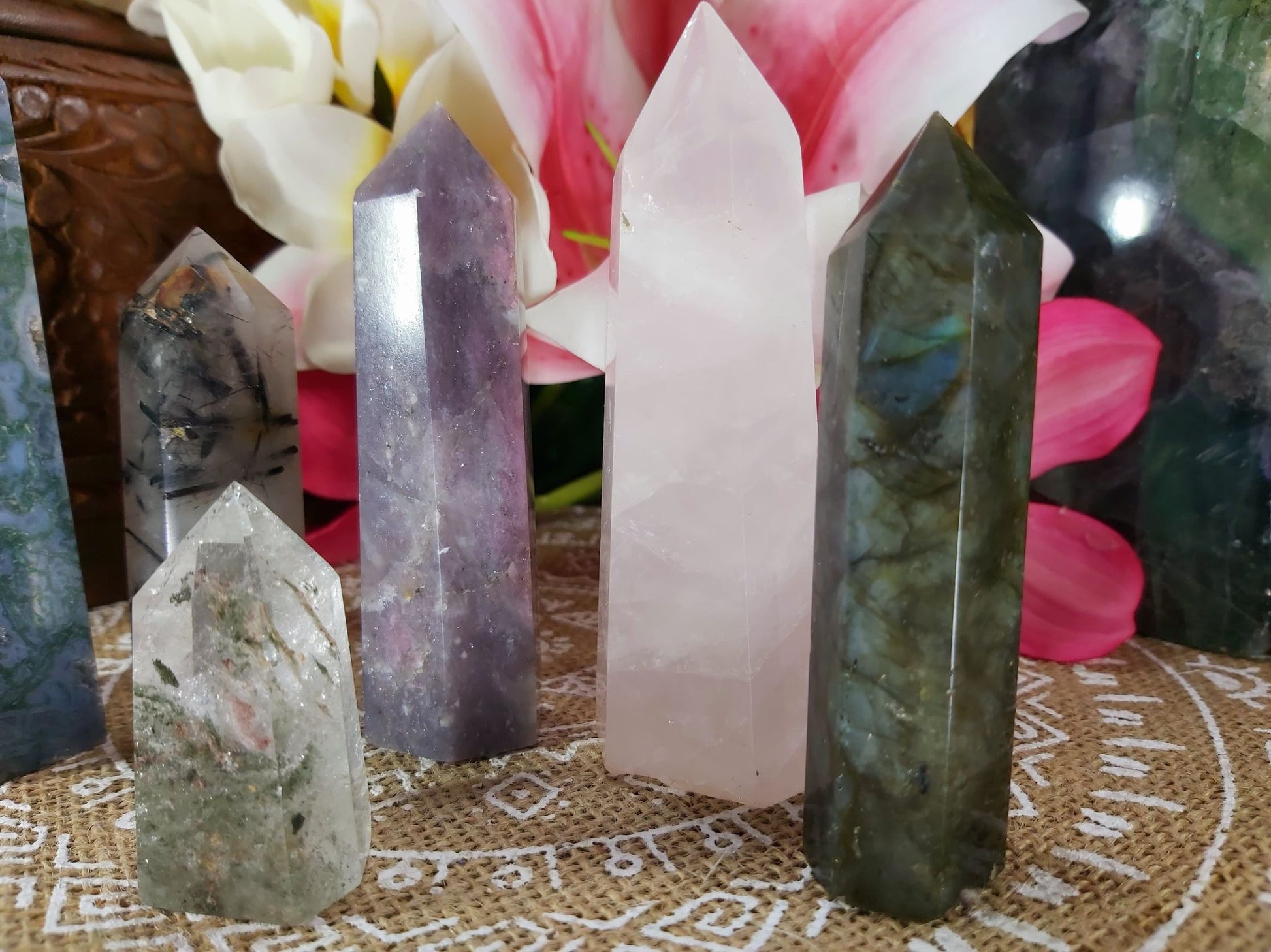 6 Crystals Included: Moss Agate, Rose Quartz, Pink Tourmaline, Labradorite, Black Tourmaline, and Garden Quartz