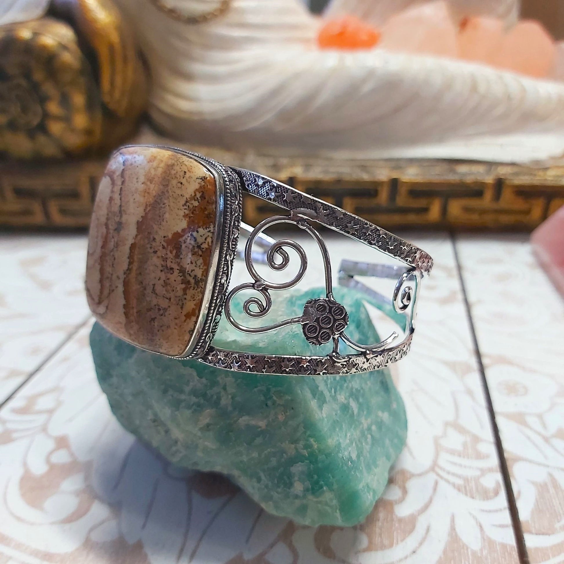 Welcome style and spirituality with this lovely, charming, and unique Picture Jasper gemstone bracelet making the perfect jewellery addition to your outfit for all occasions.
