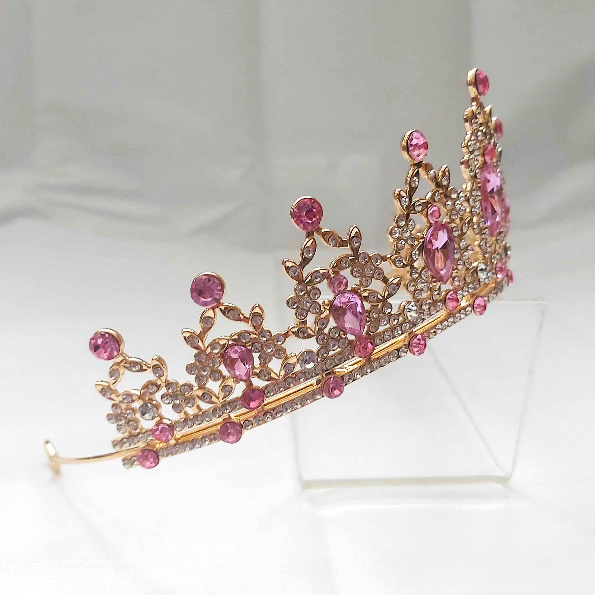Pink Rhinestones Crown Tiara Baroque (CR27)