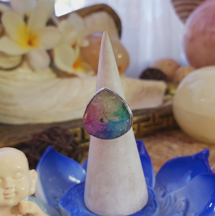 Rainbow Agate Physical Wellbeing Gemstone Ring US 6 (E2098)