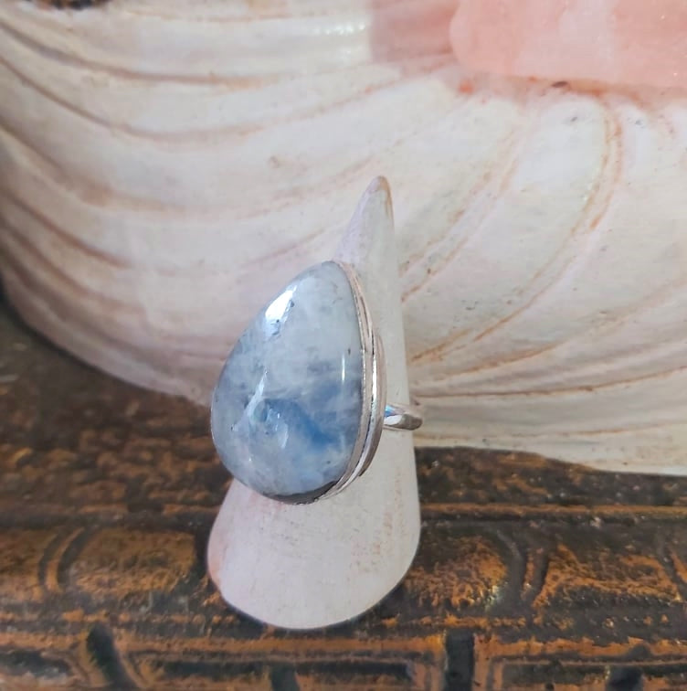 Welcome style and spirituality with this lovely, pretty, and unique Rainbow Moonstone gemstone ring making the perfect jewellery addition to your outfit for all occasions.