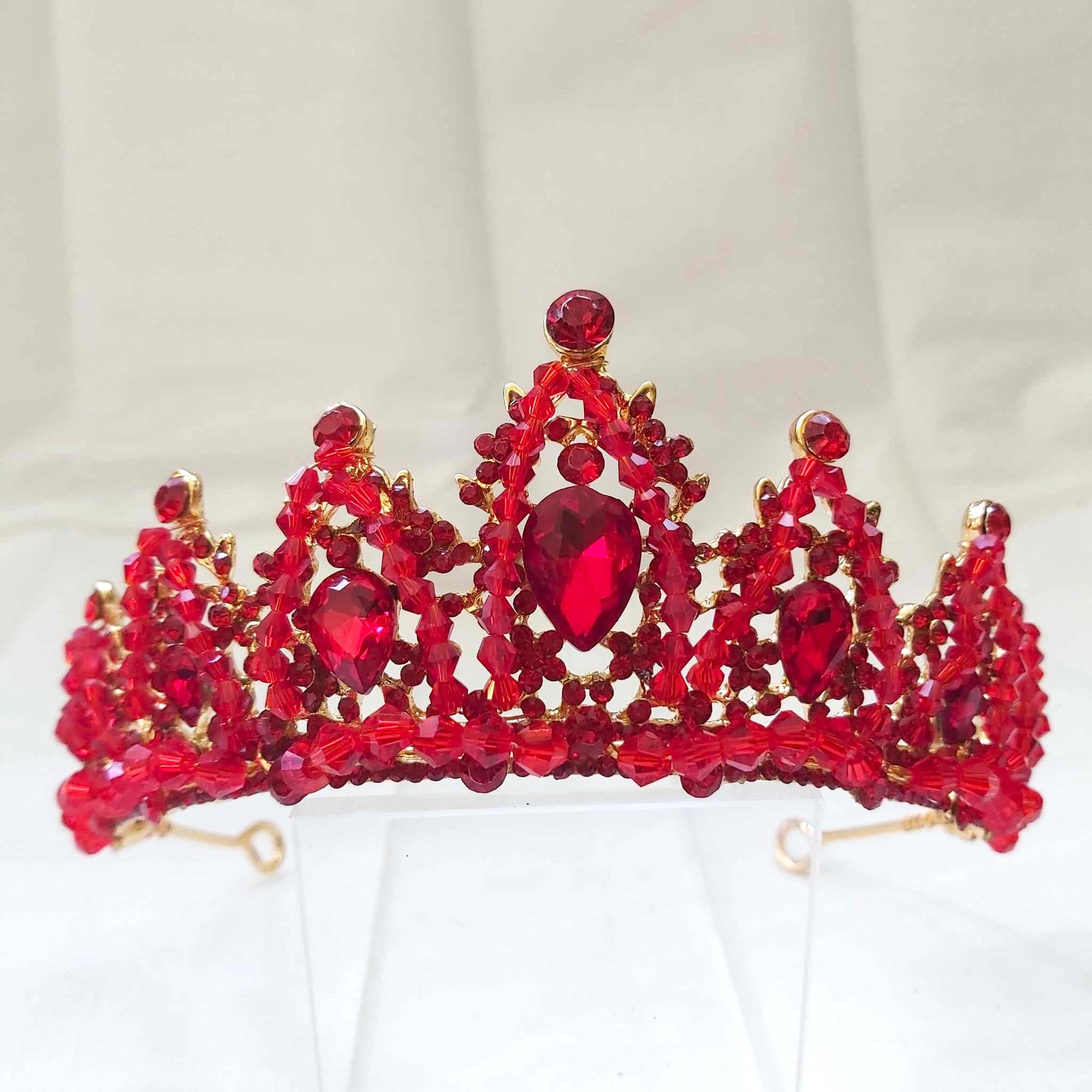 Red Rhinestones Crown Tiara Baroque (CR43)