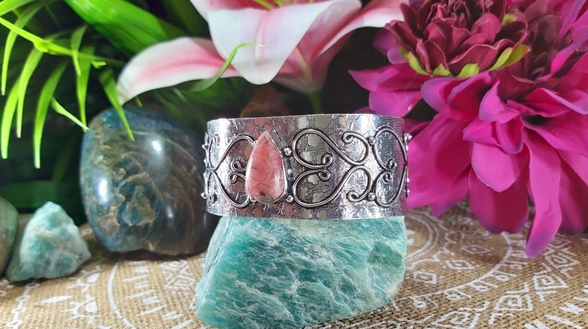 Welcome style and spirituality with this lovely, charming, and unique Rhodochrosite crystal bracelet making the perfect jewellery addition to your outfit for all occasions.