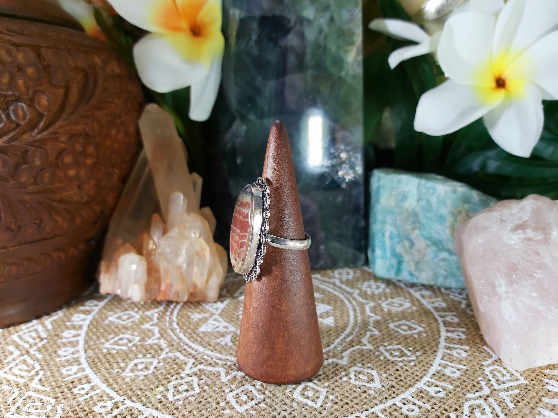 Welcome style and spirituality with this lovely, charming, and unique Rhodochrosite gemstone ring making the perfect jewellery addition to your outfit for all occasions.