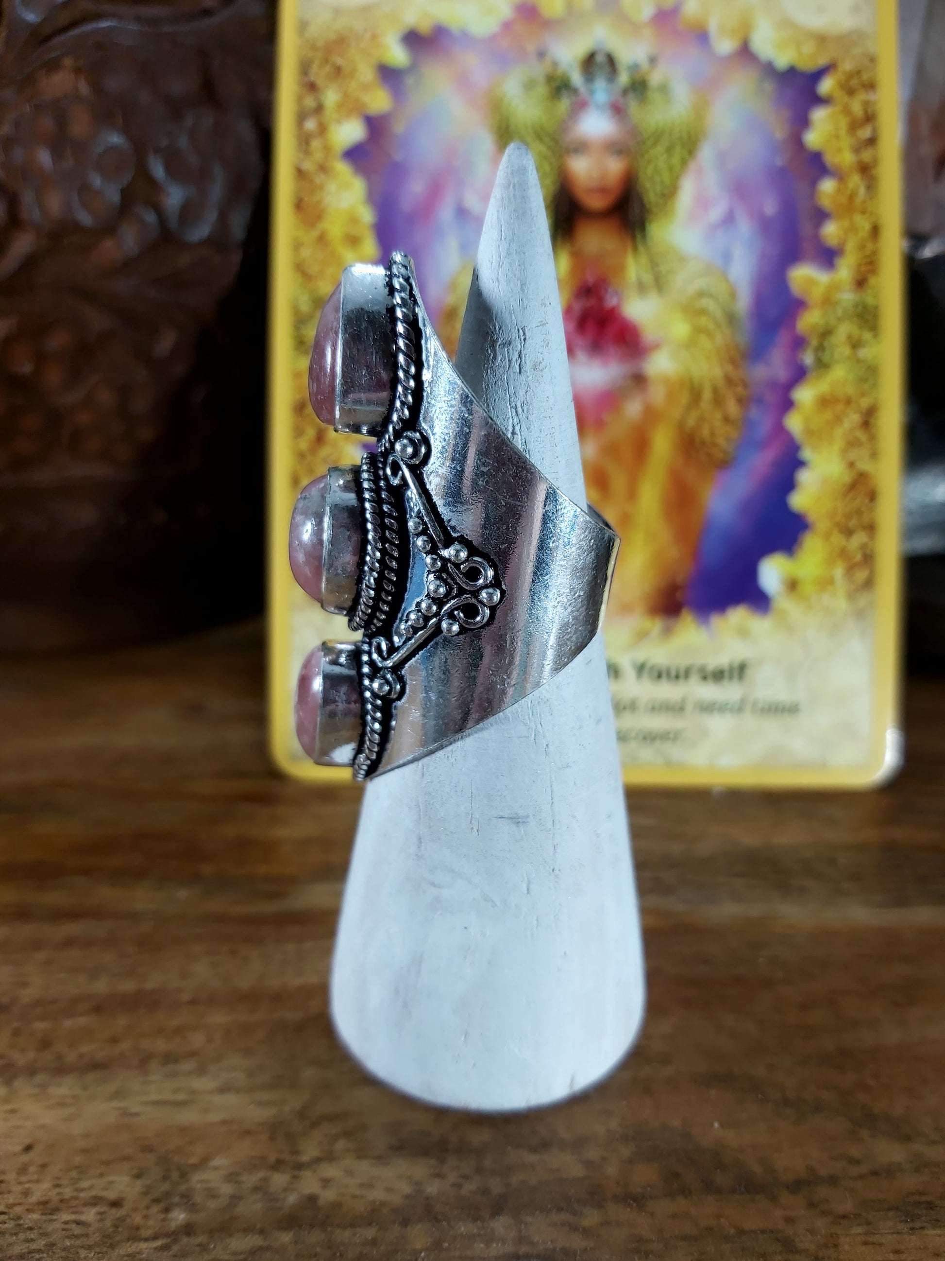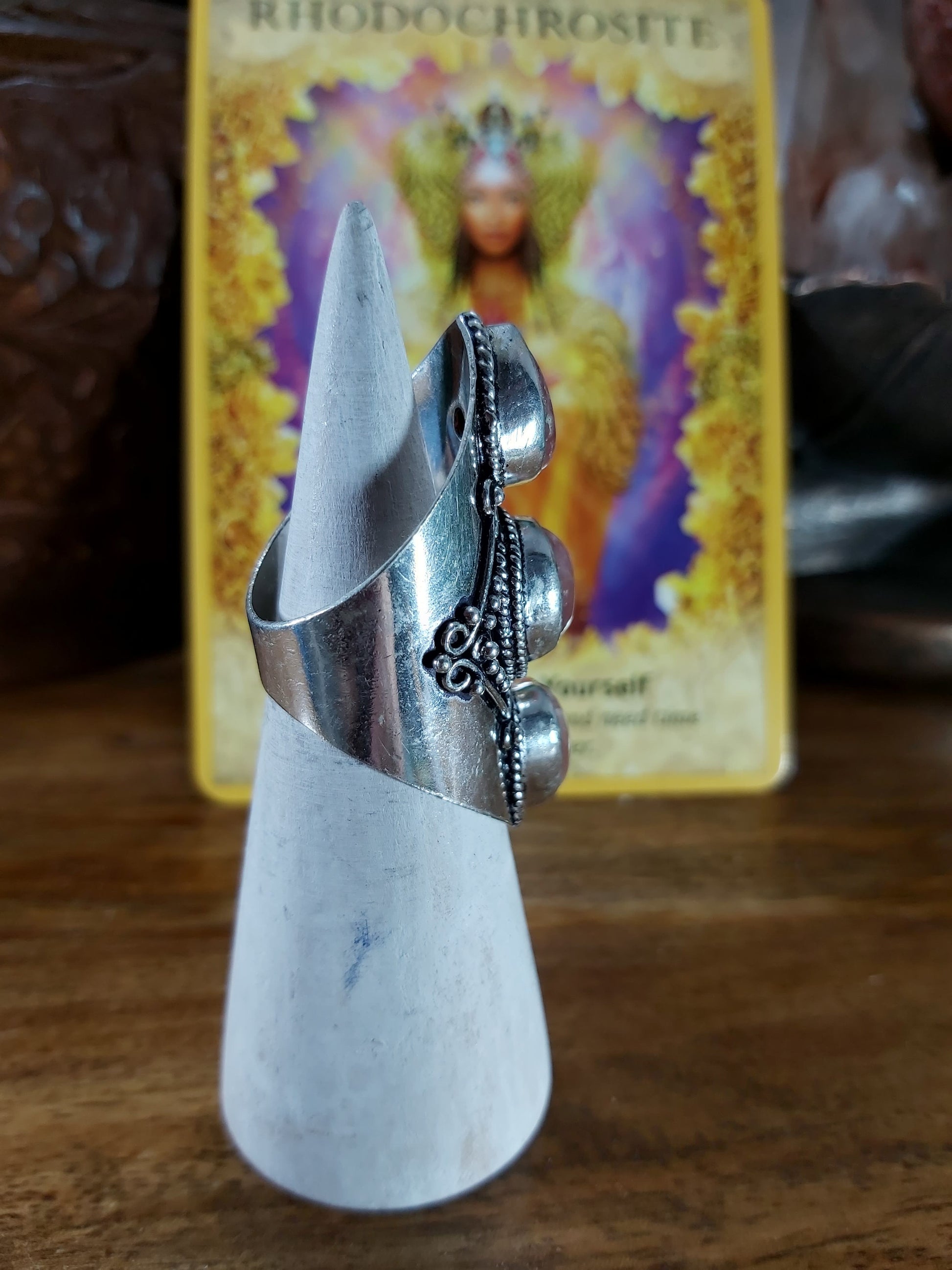 Welcome style and spirituality with this lovely, charming, and unique Rhodochrosite gemstone ring making the perfect jewellery addition to your outfit for all occasions.