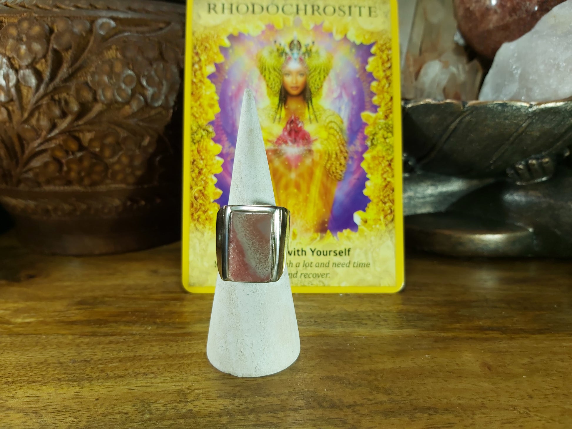 Welcome style and spirituality with this lovely, charming, and unique Rhodochrosite gemstone ring making the perfect jewellery addition to your outfit for all occasions.