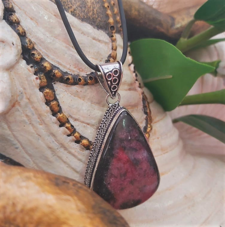 Welcome style and spirituality with this lovely, pretty, and unique Rhodonite gemstone pendant making the perfect jewellery addition to your outfit for all occasions.