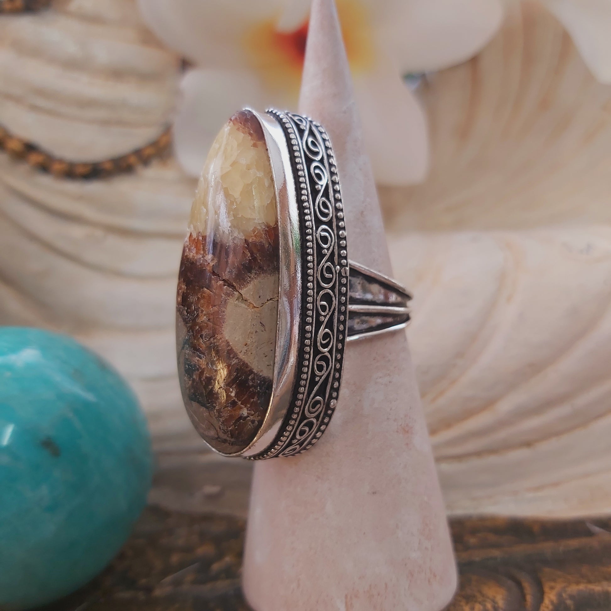 Welcome style and spirituality with this lovely, pretty, and unique Serpentine gemstone ring making the perfect jewellery addition to your outfit for all occasions.
