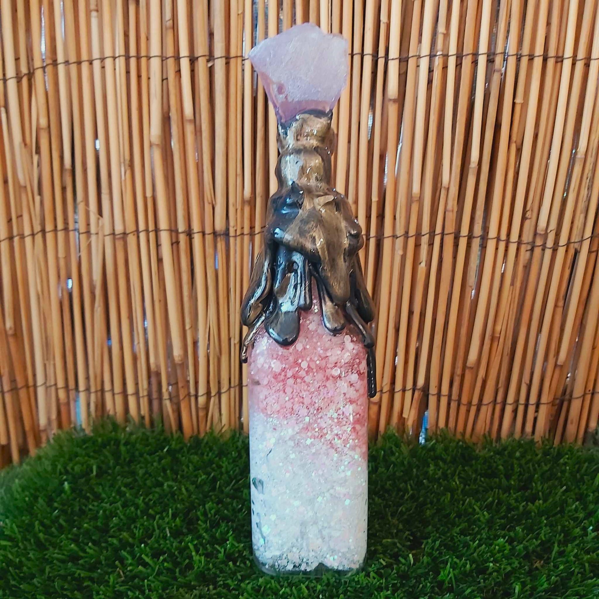 ✨ Our Spiritual & Divination Spell Potion Altar Bottles are handmade by Kaftan 9, inspired by dreams and visions. Each is crafted from carefully selected materials and topped with a unique crystal — this one features a raw Amethyst.