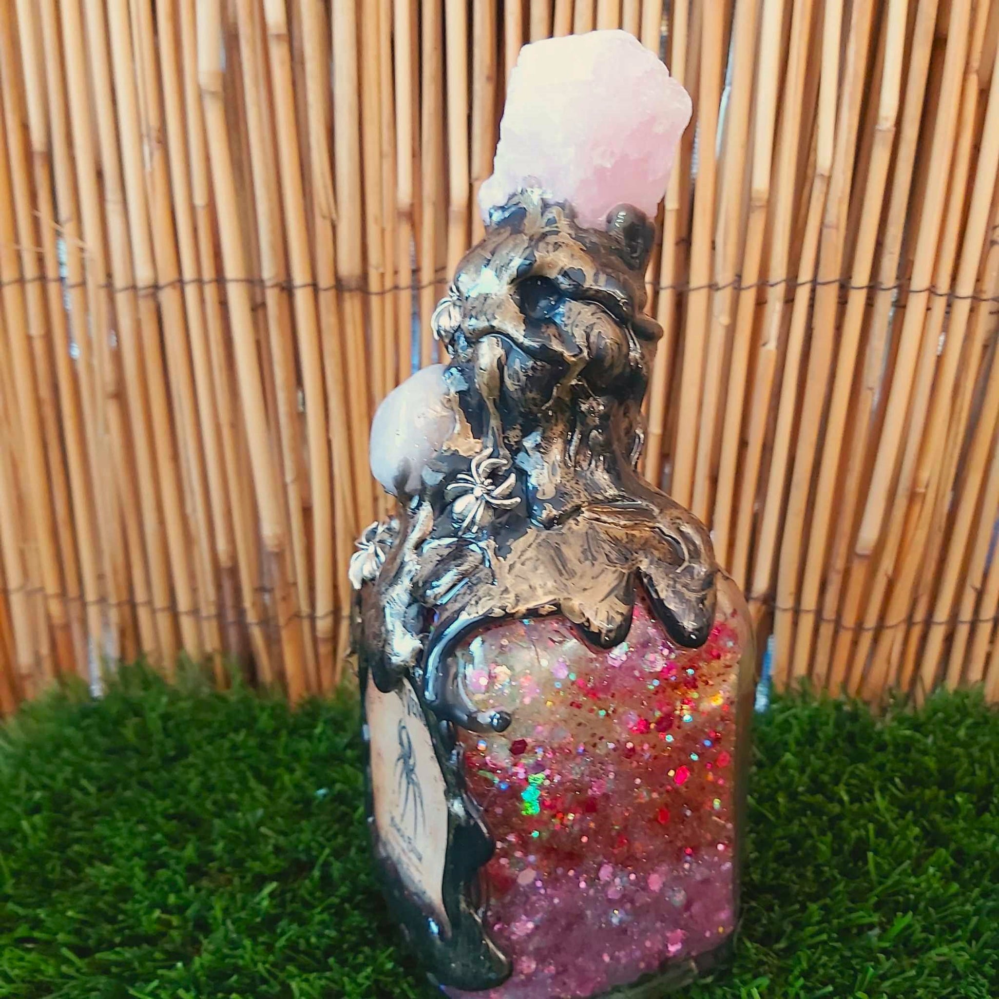 🌿 Crafted with layered materials and topped with a stunning Aragonite gemstone, this approx. 18 cm bottle is both decorative and spiritually symbolic – ideal for intention setting, energy work, or simply adding a mystical vibe to your home.
