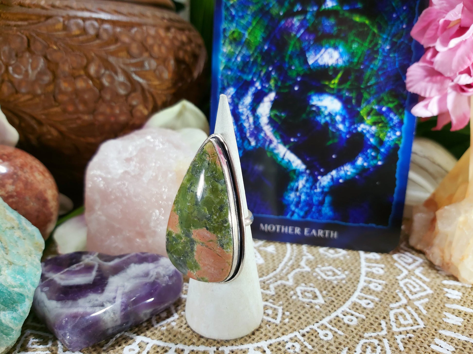 Welcome style and spirituality with this lovely, pretty, and fashionable Unakite gemstone ring making the perfect jewellery addition to your outfit for all occasions.