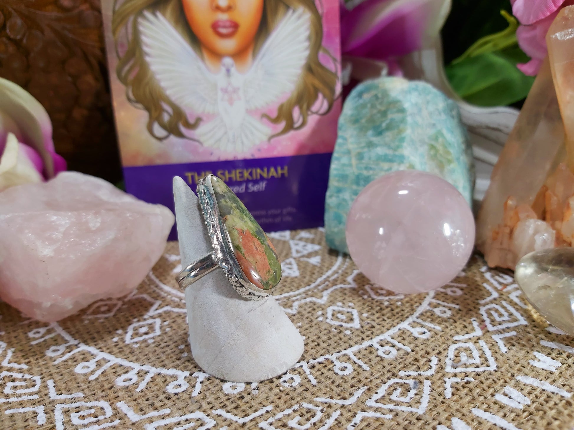 Welcome style and spirituality with this lovely, pretty, and fashionable Unakite gemstone ring making the perfect jewellery addition to your outfit for all occasions.
