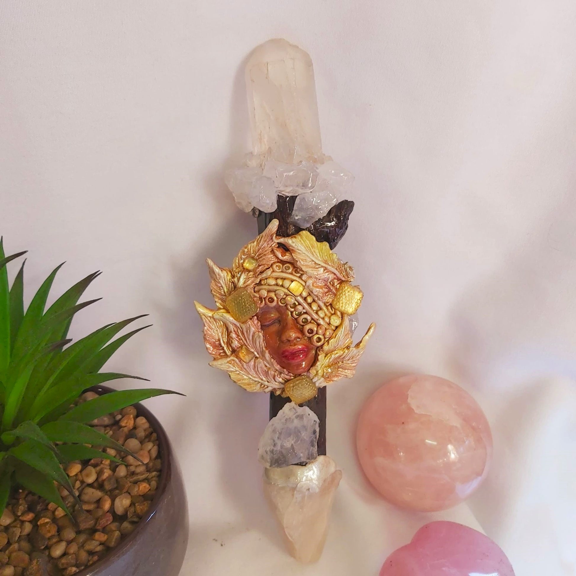Note: Please refer to our Crystal Disclaimer FAQ page for more details. Please note, this wand is handmade by Kaftan 9, not mass-produced, so small imperfections may be present and add to its unique character. The photos show the exact item you will receive. Resellers are welcome to purchase and resell our handmade pieces, but please credit Kaftan 9, as each wand takes 8–14 days to create with care.